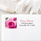 Ein nahes Aufkommen einer rosa Rose, die "hübsch in rosa" sagt.