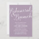 Dieses elegante Probe-Brunch lädt mit rustikaler weißer Kalligraphie und einem prächtigen lila Hintergrund ein, der einer lila, orchid oder lavender Blume ähnelt.