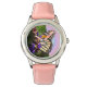 Kinderuhr aus Edelstahl mit rosa Lederarmband