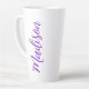 Eine hübsche personalisierte lila Monogramm Latte-Tasse für ein Mädchen oder Typ, das einfache, handgeschriebene Geschenke Liebe. Schönes kursives Drehbuch auf der Flaschenseite, das Ihren Namen in niedlicher Typografie ausdrückt.