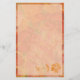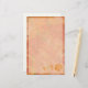 Warme orange und rote Blumenkunst auf eleganten Schreibwaren und Noten.