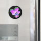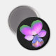 Dieser Magnet .weist ein Foto einer wilden Pansy-Blume auf. Das Foto wurde künstlich gefärbt, was zu einer Panik mit leuchtenden rosa lila Blütenblättern mit grünen Spitzen-Blättern und einem tiefblauen Zentrum führt. Der Hintergrund ist schwarz, um die Blume zu heben.