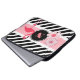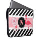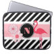 Ein hübscher Laptop-Cover/Gehäuse, der von jedem Flamingo-Enthusiasten Liebe erhält. Frische und moderne schwarz-weiße Streifen mit rosa Akzenten, Blume und einem Flamingo. Fügen Sie ein Monogramm zur Anpassung hinzu.