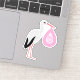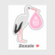 Dieser phantastische, geformte Aufkleber zeigt ein grafisches Bild eines niedlichen Weißstorches mit schwarzen Schwanz-Federn, die auf einem hellrosa Bündel von Decken haften. Auf dem Bundle ist rosa Text, der "Baby Girl" sagt. Dieses Design ist ideal, um ein kleines Mädchen zu feiern.