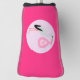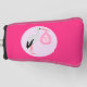 Dieses phantastische Golftaptercover zeigt ein grafisches Bild eines niedlichen Weißstorches mit schwarzen Schwanz-Federn, die auf einem hellrosa Bündel von Decken haften. Auf dem Bundle ist rosa Text, der "Baby Girl" sagt. Dieses Design ist ideal, um ein kleines Mädchen zu feiern.