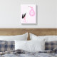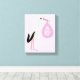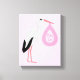 Diese phantastische Leinwand zeigt ein grafisches Bild eines niedlichen Weißstorches mit schwarzen Schwanz-Federn, die auf einem hellrosa Bündel von Decken haften. Auf dem Bundle ist rosa Text, der "Baby Girl" sagt. Dieses Design ist ideal, um ein kleines Mädchen zu feiern.