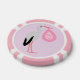 Dieses phantastische Set von Poker-Chips zeigt ein grafisches Bild eines niedlichen Weißstorches mit schwarzen Schwanz-Federn, die auf einem hellrosa Bündel von Decken haften. Auf dem Bundle ist rosa Text, der "Baby Girl" sagt. Dieses Design ist ideal, um ein kleines Mädchen zu feiern.