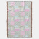 Ein hübsches Throw-Blanket mit einem hübschen, nostalgischen Imitat-Patchwork-Muster aus rosa Hunde-Rose auf himmelblauem Hintergrund mit passenden Polka-Punkten, Streifen und Pillen. Teil der Posh & Painterly 'Rosy Posy' Kollektion.