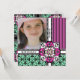Schönes Foto Rahmen Einladung Anzug jeder Gelegenheit. Lebhaftes fuchsienrosa und grün (grüner Hintergrund ist anpassbar). Original Damast Muster und Ziermotiv von Göttlicher Damast.