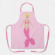 Diese phantastische Schürze zeichnet sich durch ein digitales Kunstbild einer hübsch rosa Meerjungfrau aus. Sie hat blondes Haar und blaue Augen und eine rosa Muschel. Ihr Schwanz ist rosa und mit hübsch rosa leuchtenden, rautenförmigen Schuppen bedeckt. Sie trägt eine goldene, herzförmige Halskette und einen goldenen Ring an ihren Fingern. Ihre Nägel sind rosa und sie hat einen rosa Lippenstift auf. Sie trägt auch einen schönen rosa Bug im Haar.
