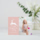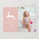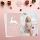 Ein eleganter weißer Hirsch springt über die Weihnachtsworte................................................................................................................................................................................................................................................ Klassische Eleganz mit einem hübschen Rentier über herrliche Kalligraphie und Ihr familiäres Foto füllen die Vorderseite dieser schönen rosa Grußkarte. Die Rückseite ist ein 2. Foto und Ihre individuelle Nachricht.