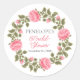 Vielen Dank an Ihre Freunde und Familie für das Duschen mit Liebe mit diesem rustikalen chic botanischen Thema Brautparty danke Ihnen Aufkleber mit einem Kranz blühender rosa wilde Rose und elegantes grünes Blattwerk und BRAUTPARTY in elegantem Drehbuch Schriftart. Ideal für Landschaftsfeiern oder Gartentheater Brautparty mit rustikaler, aber eleganter Touch.
