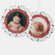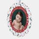 Das erste Weihnachtsgeschmack des hübschen Babys mit einem runden Foto des Babys mit geschwungenem Foto und hübschem roten Beeren- und Grünmuster und niedlichen Herzen.