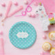 Personalisieren Sie diese jeden Anlaß Polka Dot Papiertafel aus hübschem Rotkehlblau mit weißen Polka-Punkten. Ein ovaler, dekorativer Textbereich, in der Mitte des Tellers, hat einen eigenen Text, der auf Sie zugeschnitten werden kann. Ideal für jeden Anlass.