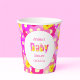 Schöne Babyduschbecher mit einem ansprechenden Blumendesign in zauberhaften Rosa und Gelb, ideal, um ein kleines Mädchen zu ehren. Ideal für Frühlings- oder Sommerferien und personalisiert für einen besonderen Flair.