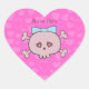 Hübsch rosa Cartoon Schädel und Herz Personalisier Herz-Aufkleber