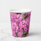 Mit diesen Papiertassen, die das ummantelte Foto hübscher, rosa Daphne-Blume enthalten, können Sie einem Party, Picknick oder einem anderen besonderen Ereignis Spaß machen. Ein schönes, blumengeschmücktes Design! Pokalschilder sind optional.