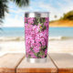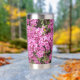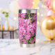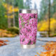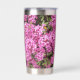 Ein trendiger Edelstahl-Thermalwäscher für Ihre warmen oder kalten Getränke, der ein umgehendes Foto von hübschen, kleinen, rosa Daphne-Blume bietet. Ein schönes Blumendesign!