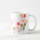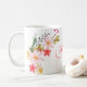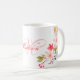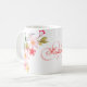 Eine schöne pinkfarbene Handgemälde Aquarellblütenbilderzeichnung auf einer Tasse mit eigenem personalisierten Monogramm und Namen.