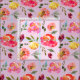 Ein hübsches und feminines Muster von Aquarellbildern in Rosa-, Rot- und Gelbtönen, mit Blattwerk, auf einem weichen rosa Hintergrund.