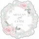 Ein Kranz aus pastellfarbenen, hellrosa Rose mit silbernen Blätter und Eukalyptus mit Glitzern umgibt die Namen der Braut und des Bräutigams und das Hochzeitstag - Eine Kombination aus Schriftzeichen und einer minimalistischen, zeitgenössischen Textgestaltung macht es zu einer trendigen Hochzeitssuite. Dies ist Teil einer Sammlung von Hochzeitsartikeln mit passendem Hochzeitszubehör. Design erstellt für die BarefootBride™ © by Whimsical Artwork™