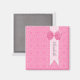 Ein eleganter und femininer Vintager Medaillon rosa Damast-Mustermagnet mit einem stilvollen und gürtelhaften Bandbanner und einem niedlichen dekorativen Doppelbogen. Personalisieren Sie dieses hübsche Zuhause-Accessoire im rosa Stil, indem Sie Ihren Namen in den benutzerdefinierten Textbereich einfügen. Flachbild, nicht echtes Band. Design-Urheberrecht von @OhSoGirly