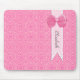 Ein feminin Vintages rosa Medaillon Damastmuster Mousepad mit einem gürtelrosa Band, das in einen niedlichen Bogen gebunden ist. Personalisieren Sie dieses hübsche altmodische Design, indem Sie Ihren Namen hinzufügen. Flachbild, nicht eigentlicher Bogen.