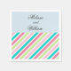 Diese hübsche Rosa Streifen Serviette hat einen blauen Hintergrund für die obere Hälfte des Designs mit rosa diagonalen Streifen in der unteren Hälfte. Der Name des Ehepaares ist in schwarz oben in kursiv geschrieben. Kaufen Sie noch heute Ihre! Kunstwerk erstellt von: AMBillustrations http://www.etsy.com/shop/AMBillustrations/