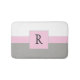 Diese hübsche, rosa, weiße und graue Badematte aus Monogramm weist oben einen weißen Hintergrund mit grauem Hintergrund auf. In der Mitte ist eine rosa Kiste. Monogramm Ihrer Badematte in verschiedenen Farben. Kaufen Sie noch heute Ihre!