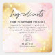 Ingrediente Etiketten mit schimmerndem Design aus Gold und Rosa.