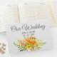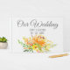 Das hübsche, moderne und elegante Gästebuch besticht durch hübsche Rose, besprüht in den Farben sommerorange und gelb, mit vollständig anpassbarem Text in ergänzenden grauen Schriftart auf weißem Hintergrund.