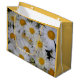 Genießen Sie Ihr Geschenk mit dieser großen Geschenktasche in gelbem Gewand, die ein Foto von hübschen, taufküssen, weißen Daisies zeigt. Ein schönes, blumengeschmücktes Design! Wählen Sie Ihren Geschenksackstil aus.