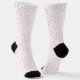 Diese Crew-Socken haben ein abstraktes Muster aus hübschen, rosa Polka-Punkten auf weißem Hintergrund.
