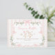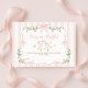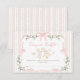 Dieses Design, das eine herzliche Illustration einer Mutter- und Babygans mit Bögen, schwimmenden Ballons und umgeben von sanften Blumen und Grünpflanzen bietet, ist die perfekte Mischung aus süß, spielerisch und elegant. Set gegen weiche, rosa Streifen und gepunktete Details, handbemalte Elemente und zarte Farbbandakzente. Diese Einlegekarte eignet sich ideal für eine coquette-inspirierte Babydusche im Storybuchstil.