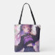 Personalisierte Tasche. Niedliches Anime-Mädchen mit Kopfhörer mit Katzenohren und einem lila und schwarzen Pullover. C