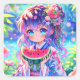 Hübsche Anime Girl Eating Quadratischer Aufkleber