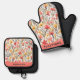 Hübsche Aquarellfarben Blume Rot-Gelb-Blumengestal Ofenhandschuh & Topflappen-Set