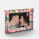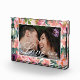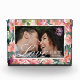 Das fröhliche und lebendige Aquarell-Blumenbild umrahmt das fröhliche Paare-Foto. Hübsche Liebe Skript, Hochzeitstag und Monogramme sind süße Touchs zu diesem schönen Foto Block.