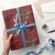 Rustikal-roter Hintergrund mit goldenen Imitaten und goldenen Bienen wurden für dieses elegante Geschenkpapier verwendet. Rote Rosen Grafik trägt zur Geliebtheit dieses Designs bei. Eine schöne Geschenkpackung. So hübsch für jede Gelegenheit oder Zeit des Jahres.