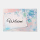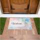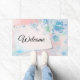 Hübsche blaue Blumen auf rosa Hintergrund Empfang Fußmatte