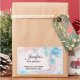 Geburtstag danke Ihnen Aufkleber mit schönen blauen Blumen auf einem rosa Hintergrund. Ein Bild einer rechteckigen Notizbuch-Seite, die oben platziert ist, damit Sie Ihren Text im Inneren schreiben können.