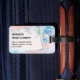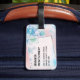 Ein Gepäckanhänger mit schönen blauen Blumen auf einem rosa Hintergrund. Ein Bild einer rechteckigen Notizbuch-Seite, die oben platziert ist, damit Sie Ihren Text im Inneren schreiben können.