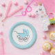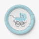 Süßer Babyparty-Pappteller, erfolgt in einem hellblauen mit weißer Tupfenkante und im festen Weiß auf dem Innere der Platte. Grafiken eines altmodischen schauenden Pram Baby des Babyblaus, verziert die weiße Mitte, der Platte. Fertigen Sie besonders an, wenn Sie wollen, um Text dieser reizenden Babyduschenpapierplatte hinzuzufügen. Zusammenpassende Einladungen und Papierservietten sind verfügbar.