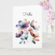 Ein Aquarellbild hübscher Blume in aquamarin, pfirsichfarben, lila, blau. Dieser botanische Ausdruck ist perfekt für einen einfachen Hallo-Gruß, aber Sie können den Text zu Ihrem bevorzugten Gruß ändern. AI unterstützte Grafik, die mit kommerziellem Einsatz erworben wurde. Kunstwerk: DreamCafeArt