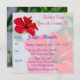 Tropisch-hawaiianische Blume schaffen hübsche Einladungen für eine besondere Geburtstagsparty. Personalisieren Sie die Vorlagenbereiche für jedes Alter. Der helle, tropische Hibiskus auf der Vorderseite spiegelt sich in der weichen Hintergrundfarbe wider