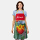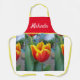 Hübsche florale Pastel Tulip Muster Frauen Küche Schürze, mit einem vollständig anpassbaren Namen. Entworfen aus meiner originalen Katzenillustrierung.