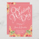 Hübsche Coral Peach Floral Script Hochzeit Einladung