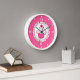 Weiß-rosa, grüne und weiße Wanduhr, mit Grafik eines Kuchens in einem Polka-Dot-Kreis. Anzahl und Punkte werden in weiß gemacht. Anpassen, um jeden gewollt Text hinzuzufügen. Macht eine tolle Geschenkidee.