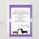 Niedliche Braun-Dusche in einem hübschen lila Damast-Hintergrund. Der weiße Textbereich über dem Hintergrund ist mit einer braunen und einer schwarzen Dackel, die mit Herzen zwischen den beiden geschmückt ist, dekoriert. Der gesamte Text ist individuell auf die Bedürfnisse Ihrer Veranstaltung abgestimmt. Adorable Polterabend Einladung die Braut zu sein wird schätzen.