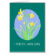 Eine sehr hübsche Osterkarte mit der vorderen Abdeckung auf Spanisch, mit einem Blumenklumpen auf blauem Hintergrund mit grüner Grenze und weißer Schrift, aus einem Aquarellbild von Judy Adamson. Die Insider-Nachricht können Sie gerne personalisieren.